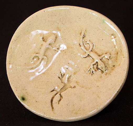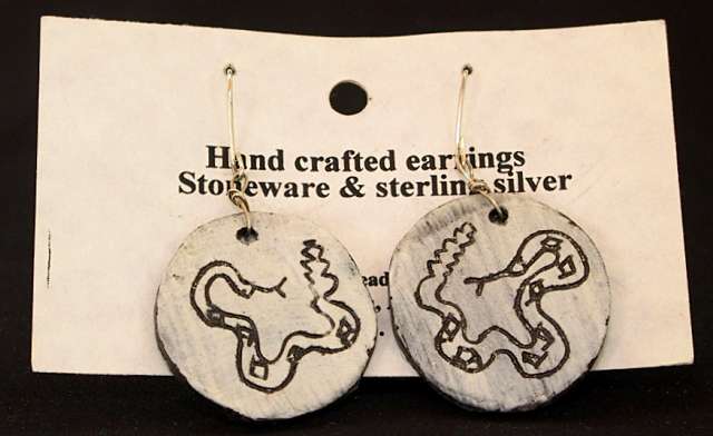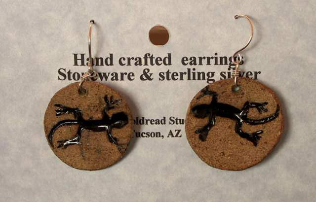 | Stoneware lizard earrings with sterling wires, post   | $16 pair |  |  |